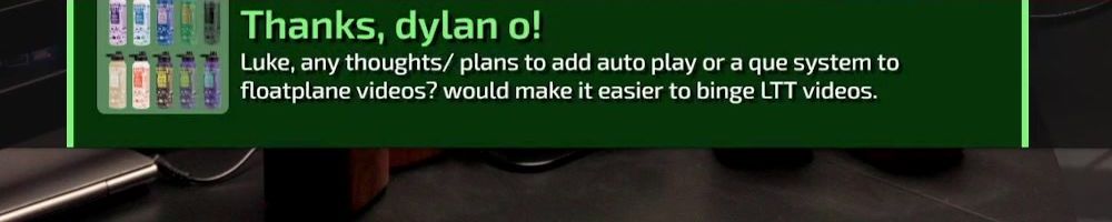 Thanks, dylan o! Luke, any thoughts/ plans to add auto play or a que system to floatplane videos? would make it easier to binge LTT videos.