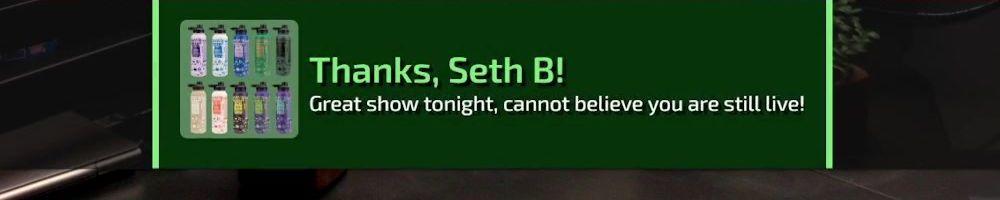 Thanks, Seth B! Great show tonight, cannot believe you are still live!