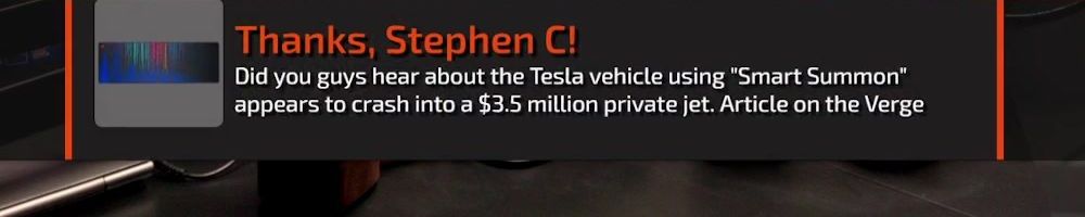 Thanks, Stephen C! Did you guys hear about the Tesla vehicle using "Smart Summon" appears to crash into a $3.5 million private jet. Article on the Verge