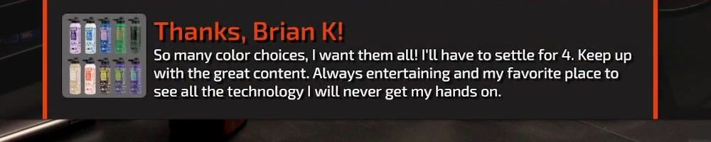 Thanks, Brian K! So many color choices, I want them all! I'll have to settle for 4. Keep up with the great content. Always entertaining and my favorite place to see all the technology I will never get my hands on.