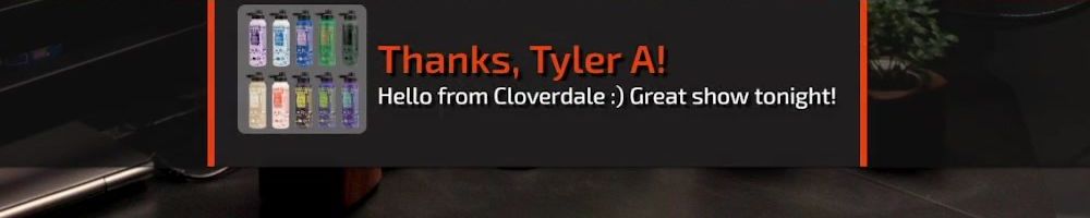 Thanks, Tyler A! Hello from Cloverdale :) Great show tonight!