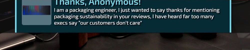 Thanks, Anonymous! I am a packaging engineer, I just wanted to say thanks for mentioning packaging sustainability in your reviews, I have heard far too many execs say "our customers don't care"