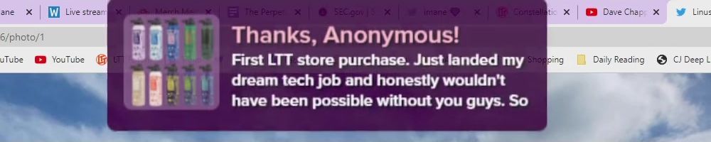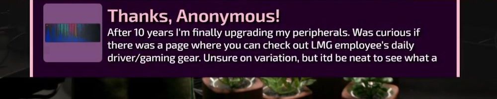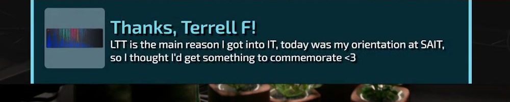 Thanks, Anonymous! First LTT store purchase. Just landed my dream tech job and honestly wouldn't have been possible without you guys. So
