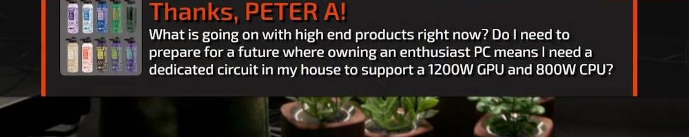 Thanks, PETER A! What is going on with high end products right now? Do I need to prepare for a future where owning an enthusiast PC means I need a dedicated circuit in my house to support a 1200W GPU and 800W CPU?