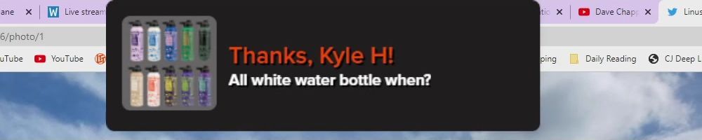 Thanks, Kyle H! All white water bottle when?