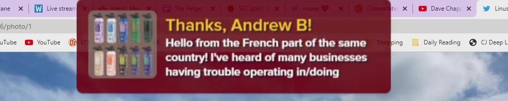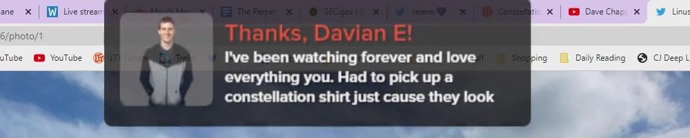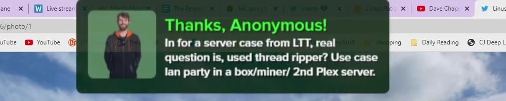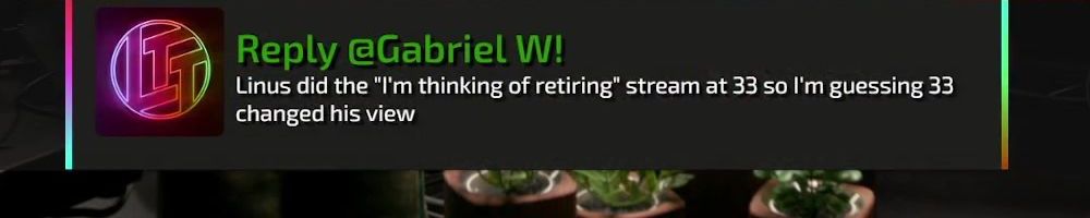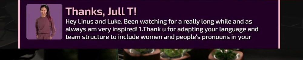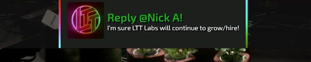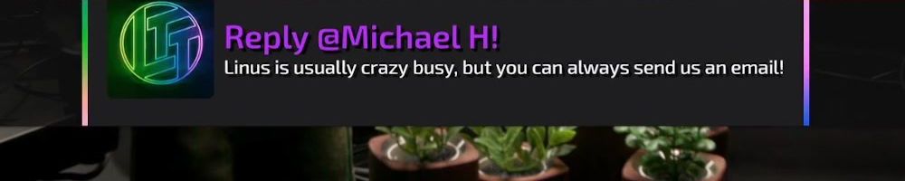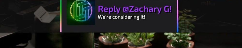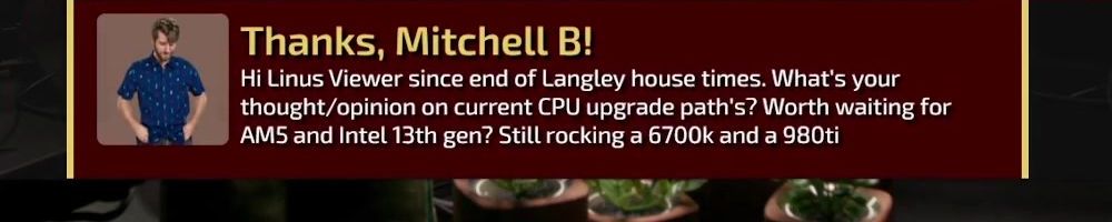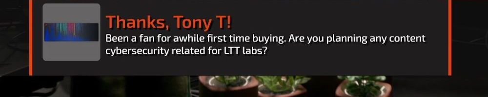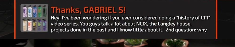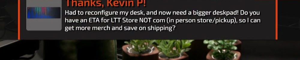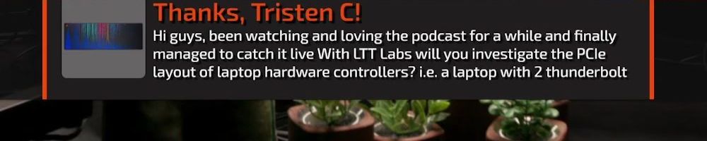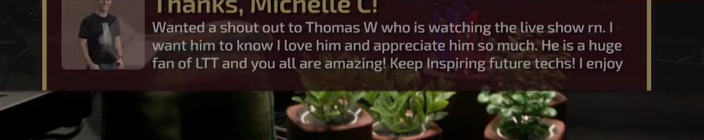 Thanks, Michelle C! Wanted a shout out to Thomas W who is watching the live show rn. I want him to know I love him and appreciate him so much. He is a huge fan of LTT and you all are amazing! Keep inspiring future techs! I enjoy