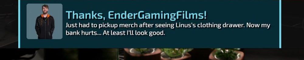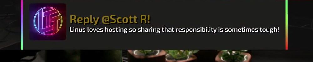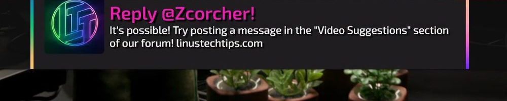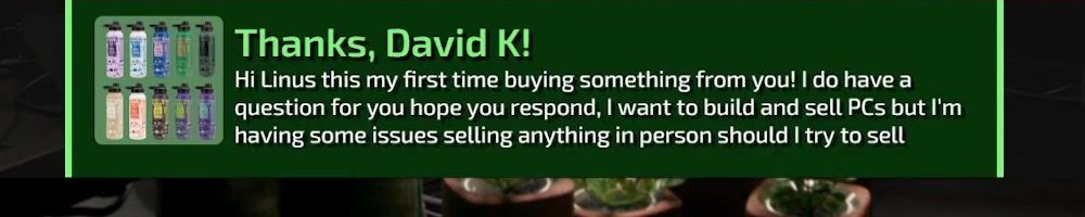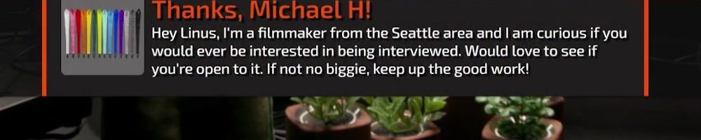 Thanks, Derek P! Hey Linus love your content, I messaged Colton with an idea to collab and do a PC build together. I hope you can check it out and let me know if you are interested