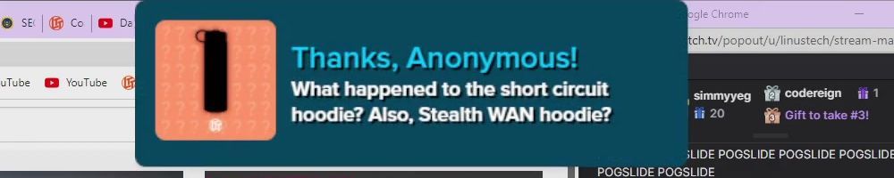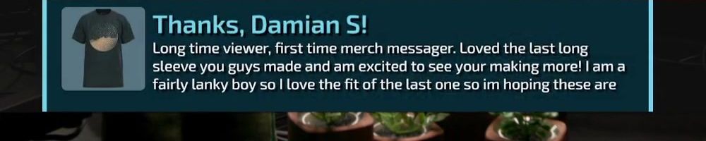 Hint: Use CTRL + F to search messages in this show, or use Whenplane's WAN Show Search tool to search for messages in all shows. Make sure that the "Merch Messages" box is checked when you search for something.