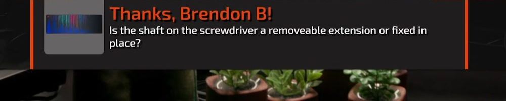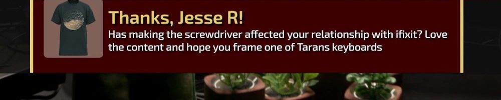 Thanks, David C! You guys are awesome!! love the merch!! looking forward to the screwdriver! Take Care x