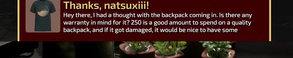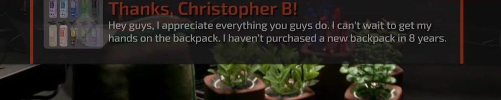 Thanks, Christopher B! Hey guys, I appreciate everything you guys do. I can't wait to get my hands on the backpack. I haven't purchased a new backpack in 8 years.