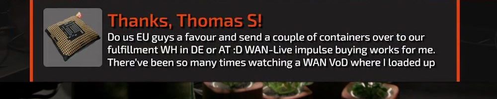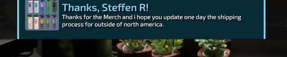 Thanks, Steffen R! Thanks for the Merch and i hope you update one day the shipping process for outside of north america.