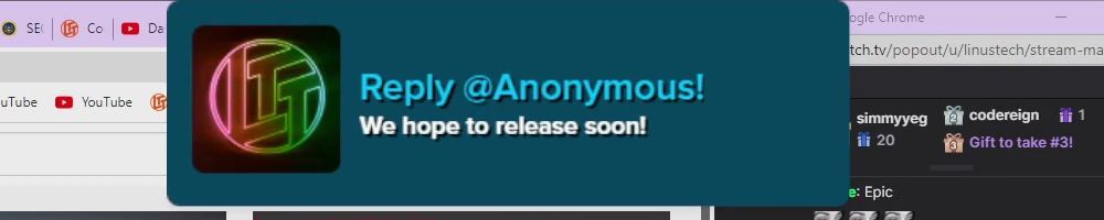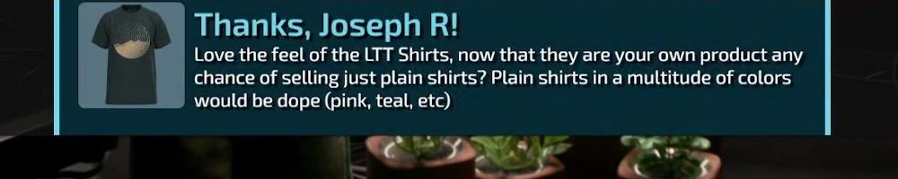 Thanks, Anonymous! Looking forward to my first LTT Store products!