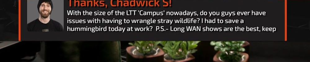 Thanks, Chadwick S! With the size of the LTT 'Campus' nowadays, do you guys ever have issues with having to wrangle stray wildlife? I had to save a hummingbird today at work? P.S.- Long WAN shows are the best, keep