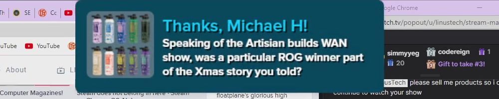 Thanks, Michael H! Speaking of the Artisian builds WAN show, was a particular ROG winner part of the Xmas story you told?