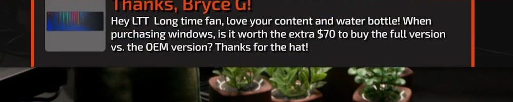 Thanks, Bryce U! Hey LTT Long time fan, love your content and water bottle! When purchasing windows, is it worth the extra $70 to buy the full version vs. the OEM version? Thanks for the hat!