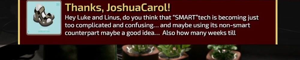 Thanks, JoshuaCarol! Hey Luke and Linus, do you think that “SMART "tech is becoming just too complicated and confusing... and maybe using its non-smart counterpart maybe a good idea... Also how many weeks till