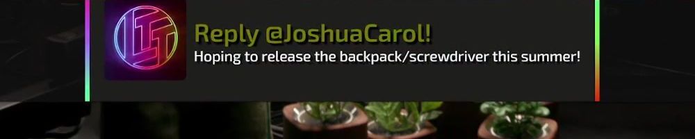 Reply @JoshuaCarol! Hoping to release the backpack/screwdriver this summer!
