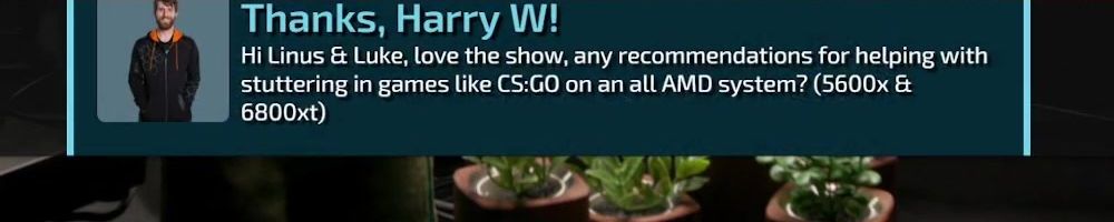 Thanks, Harry W! Hi Linus & Luke, love the show, any recommendations for helping with stuttering in games like CS:GO on an all AMD system? (5600x & 6800xt)