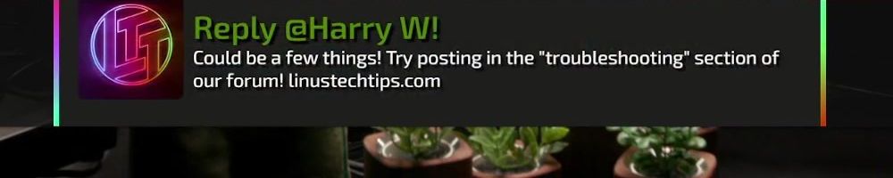 Reply @Harry W! Could be a few things! Try posting in the "troubleshooting" section of our forum! linustechtips.com