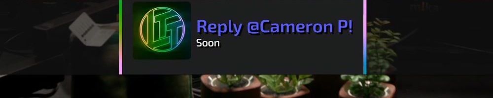 Reply @Cameron P! Soon