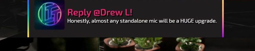 Reply @Drew L! Honestly, almost any standalone mic will be a HUGE upgrade.