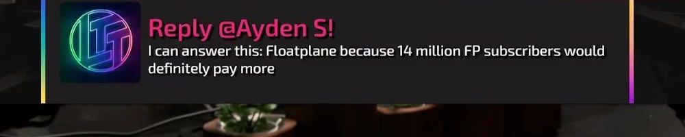 Reply @Ayden S! I can answer this: Floatplane because 14 million FP subscribers would definitely pay more