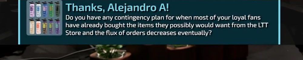 Thanks, Alejandro A! Do you have any contingency plan for when most of your loyal fans have already bought the items they possibly would want from the LTT Store and the flux of orders decreases eventually?