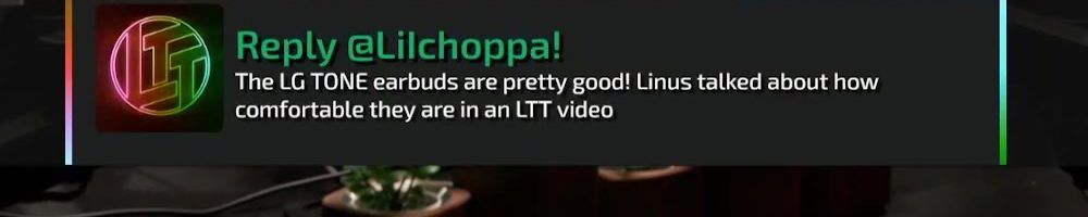Reply @Lilchoppa! The LG TONE earbuds are pretty good! Linus talked about how comfortable they are in an LTT video