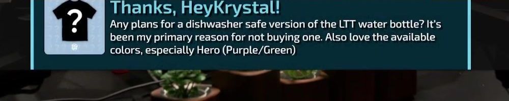 Thanks, HeyKrystal! Any plans for a dishwasher safe version of the LTT water bottle? It's been my primary reason for not buying one. Also love the available colors, especially Hero (Purple/Green)