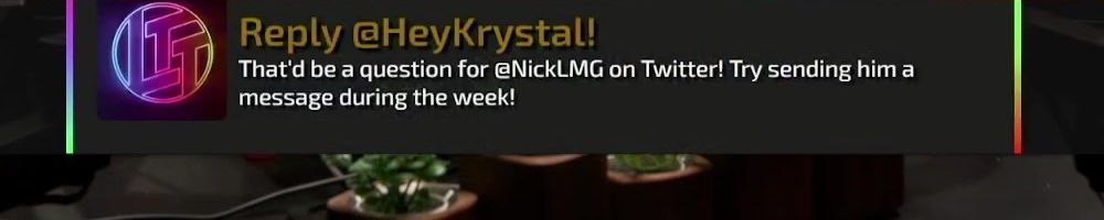 Reply @HeyKrystal! That'd be a question for @NickLMG on Twitter! Try sending him a message during the week!