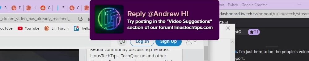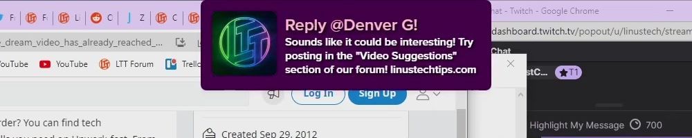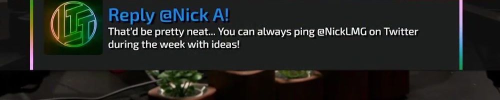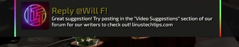 Reply @Will F! Great suggestion! Try posting in the "Video Suggestions" section of our forum for our writers to check out! linustechtips.com
