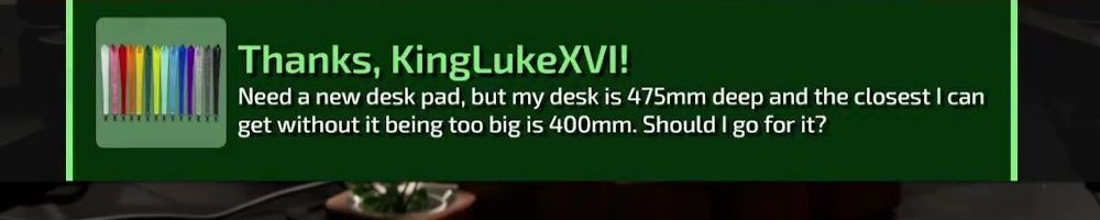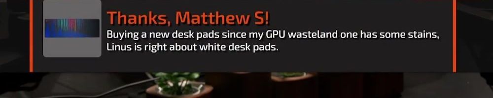 Thanks, Matthew S! Buying a new desk pads since my GPU wasteland one has some stains, Linus is right about white desk pads.