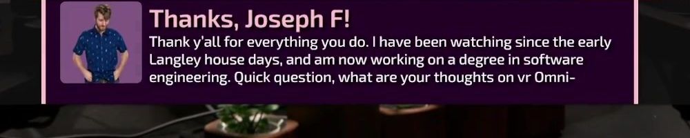 Thanks, Joseph F! Thank y'all for everything you do. I have been watching since the early Langley house days, and am now working on a degree in software engineering. Quick question, what are your thoughts on vr Omni-