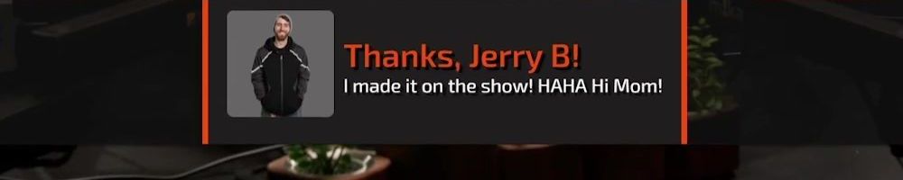 Thanks, Jerry B! I made it on the show! HAHA Hi Mom!