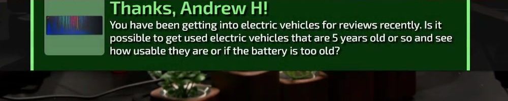 Thanks, Andrew H! You have been getting into electric vehicles for reviews recently. Is it possible to get used electric vehicles that are 5 years old or so and see how usable they are or if the battery is too old?