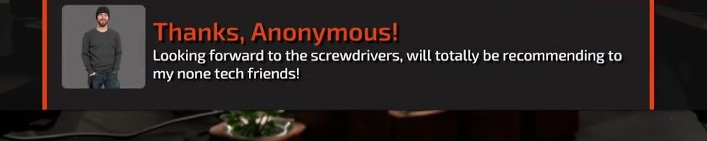Thanks, Anonymous! Looking forward to the screwdrivers, will totally be recommending to my none tech friends!