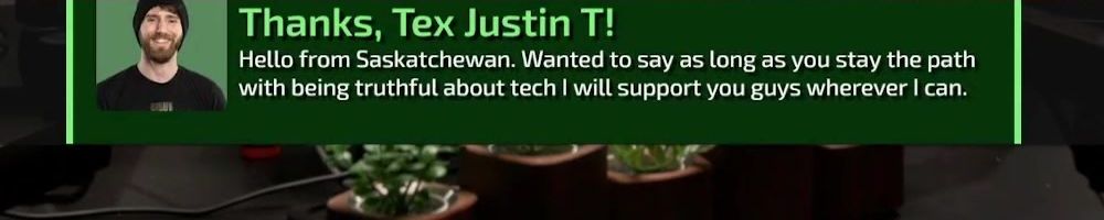 Thanks, Tex Justin T! Hello from Saskatchewan. Wanted to say as long as you stay the path with being truthful about tech I will support you guys wherever I can.