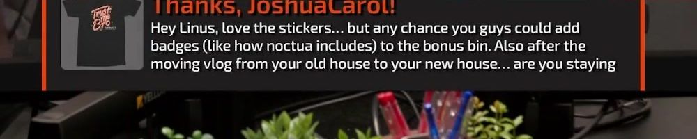 Hey Linus, love the stickers... but any chance you guys could add badges (like how noctua includes) to the bonus bin. Also after the moving vlog from your old house to your new house... are you staying