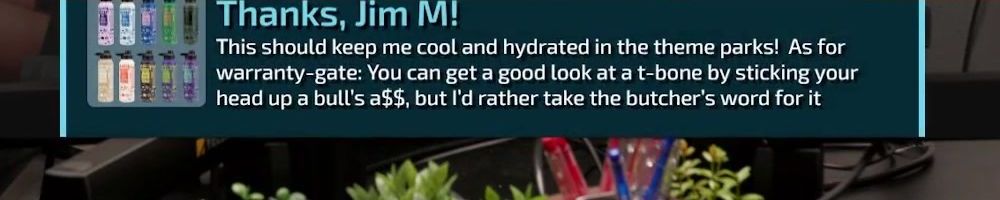 This should keep me cool and hydrated in the theme parks! As for warranty-gate: You can get a good look at a t-bone by sticking your head up a bull's a$$, but I'd rather take the butcher's word for it