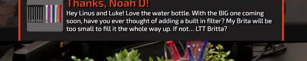 Hey Linus and Luke! Love the water bottle. With the BIG one coming soon, have you ever thought of adding a built in filter? My Brita will be too small to fill it the whole way up. If not... LTT Britta?
