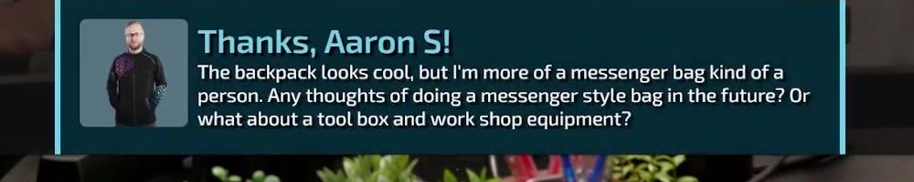 The backpack looks cool, but I'm more of a messenger bag kind of a person. Any thoughts of doing a messenger style bag in the future? Or what about a tool box and work shop equipment?