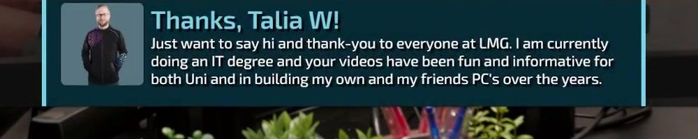 Just want to say hi and thank-you to everyone at LMG. I am currently doing an IT degree and your videos have been fun and informative for both Uni and in building my own and my friends PC's over the years.