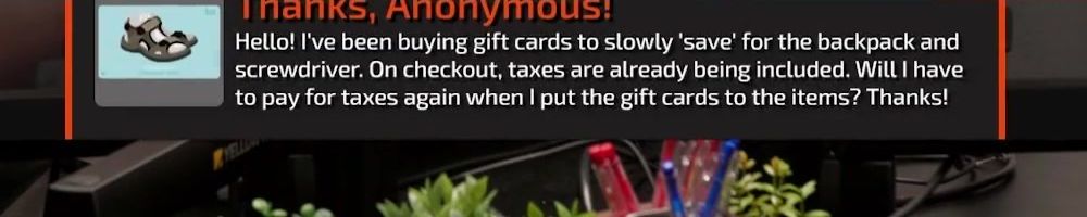 Hello! I've been buying gift cards to slowly ‘save’ for the backpack and screwdriver. On checkout, taxes are already being included. Will I have to pay for taxes again when I put the gift cards to the items? Thanks!