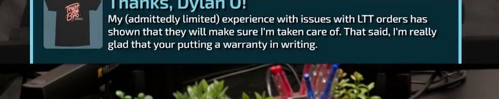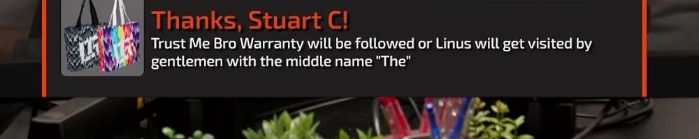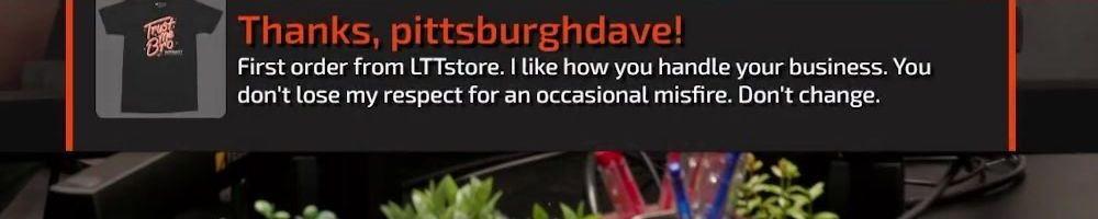 First LTT store purchase. Love the sense of humor you've had about this, and for working to make the warranty right. Looking forward to never using said warranty xD