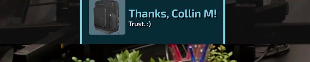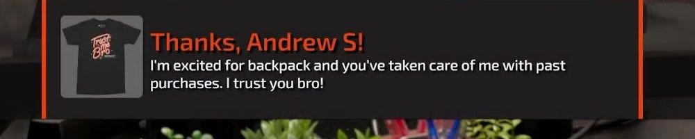 Also thanks for the honesty regarding the whole backpack situation
