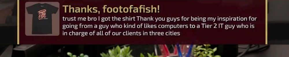 Thanks for all the amazing info you guys give from WAN show to LTT and all the other channels. You guys inspired me to build my first pc, and have led me to absolutely fall in love with computers