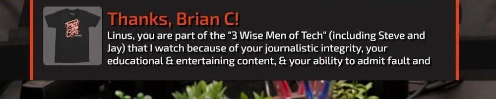 Linus, you are part of the "3 Wise Men of Tech" (including Steve and Jay) that I watch because of your journalistic integrity, your educational & entertaining content, & your ability to admit fault and