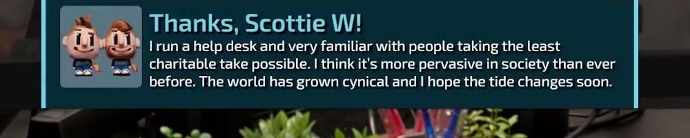 I run a help desk and very familiar with people taking the least charitable take possible. I think it's more pervasive in society than ever before. The world has grown cynical and I hope the tide changes soon.