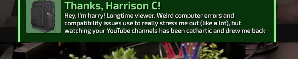 Hey, I'm harry! Longtime viewer. Weird computer errors and compatibility issues use to really stress me out (like a lot), but watching your YouTube channels has been cathartic and drew me back