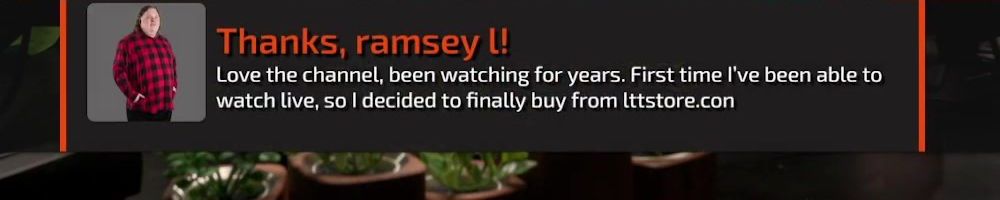Thanks, ramsey l! Love the channel, been watching for years. First time I've been able to watch live, so I decided to finally buy from lttstore.con
